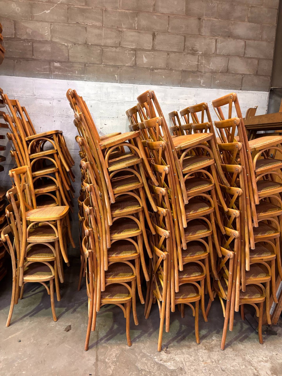 These particular cross back chairs stack effortlessly, we keep them at 8 high.