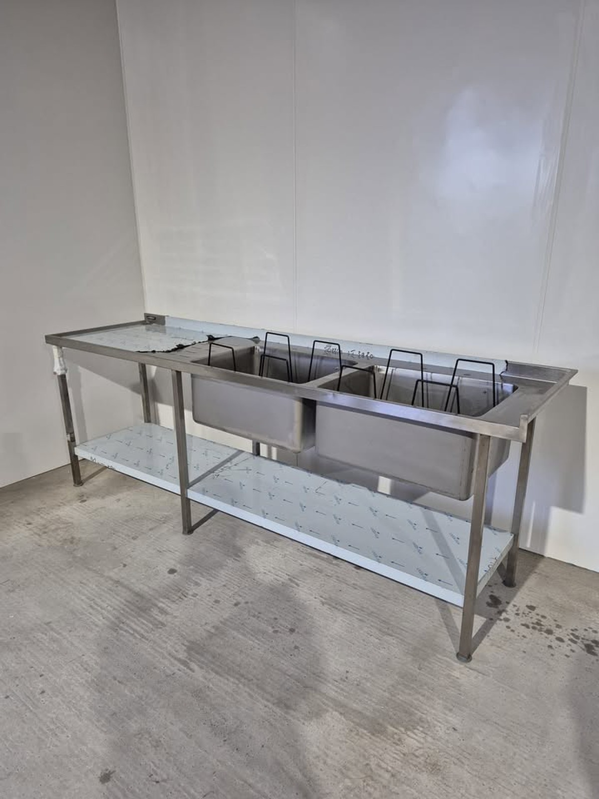 Link to order: https://www.mjsequipment.co.uk/products/new-moffat-2400mm-solid-welded-stainless-steel-double-bowl-sink-left-drainer/5071/
