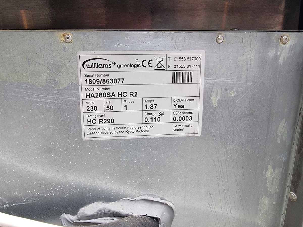 Williams HA280-SA AMBER Undercounter Twin Door Refrigerator. Used, VGC - London